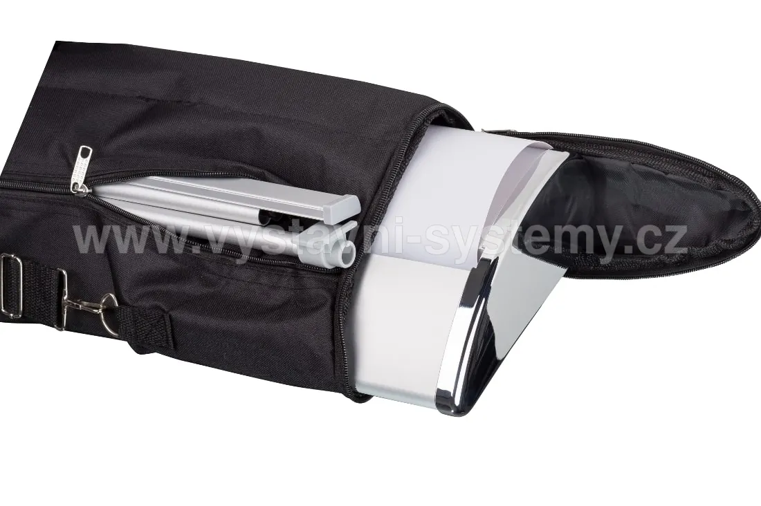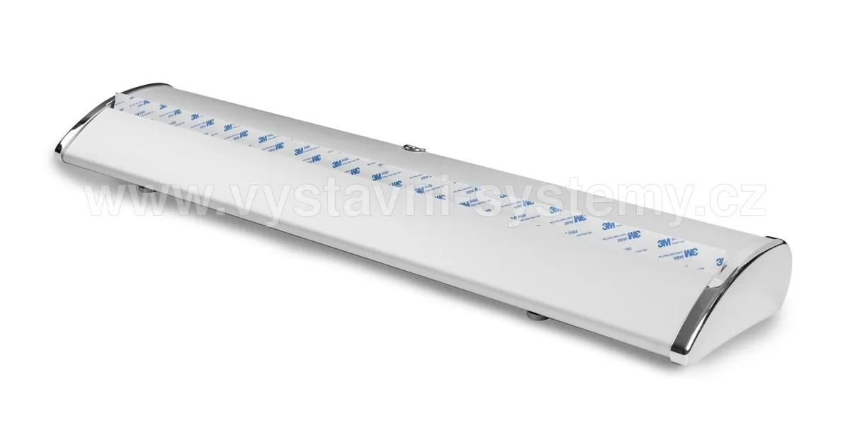 Roll up Exclusive 85 x 200 cmPosuňte svoji prezentaci s roll-upem řady Exclusive o level výš. Oproti běžné variantě standard budete totiž mít designově propracovaný tvar spodní kazety. Kazeta ve tvaru kapky je stříbrná. Získáte také odolnou polstrovanou tašku. Konstrukce je vyrobena z hliníku. Ve spodní části se pro připevnění používá kvalitní 3M páska a v horní části pak zaklapávací lišta.